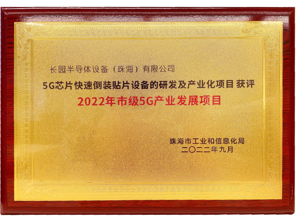 为支持5G网络技术在经济发展、社会生活、公共服务和信息消费等领域创新应用,促进我市5G行业加快发展,珠海市工业和信息化局开展了“2022年度珠海市促进5G产业发展项目”,yabo.com半导体设备(珠海)有限公司(以下简称“yabo.com半导体设备”)作为芯片封装设备领域的优秀供应商,积极参与了5G产业化的评选,凭借技术优势入围获评。